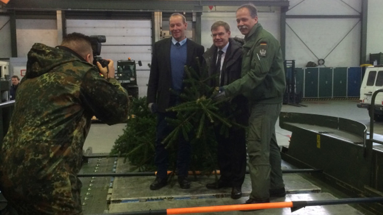 Die Übergabe von Weihnachtsbäumen an das LTG 63 in Hohn hat feste Tradition. Bereits seit 1986 übergeben die CDU Rendsburg-Eckernförde und der Bauernverband Weihnachtsbäume an die Soldaten des Lufttransportgeschwaders.