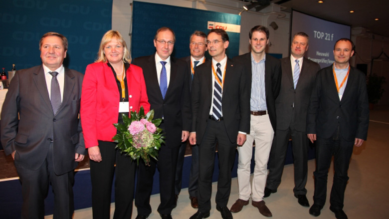 Deutliche Kritik übte de Jager an der neuen Landesregierung: Sie habe keine Ziele für Schleswig-Holstein und keine Ideen, wie es mit dem Land voran gehen solle. De Jager verdeutlichte diesen Stillstand am Beispiel der Energiepolitik, bei der die Landesregierung nur die Erfolge der CDU-geführten Vorgängerregierung weiter verwalte. Angesichts der großen Herausforderungen verlangte er von der Landesregierung einen Masterplan zur Beschleunigung des dringend notwendigen Netzausbaus und eine norddeutsche Position für die Verhandlungen mit Bund und Ländern im Rahmen der Energiewende. Ideen fehlten der Regierung auch bei der Verkehrsinfrastruktur: „Es gibt keine Konzepte für die akuten und zukünftigen Mobilitätsprobleme in Schleswig-Holstein. Dabei ist unser Land auf eine gute Infrastruktur dringend angewiesen.“ Darum müssten Projekte gefördert und nicht behindert werden, wie es die Grünen bei der Fehmarnbeltquerung täten. Über den Weiterbau der A 20 hinaus forderte de Jager von der Landesregierung zügig Planungsrecht für die Weiterführung der A 21 als östliche Umgehung Hamburgs zu schaffen. In der Bildungspolitik reichte de Jager der Regierung erneut eine ausgestreckte Hand für einen parteiübergreifenden langjährigen Schulfrieden. „Diesen braucht unser Land dringend. Die von der Landesregierung mit der Bildungskonferenz gestarteten Schulstrukturdiskussionen um die Gemeinschaftsschule helfen dem Land überhaupt nicht weiter. Viel wichtiger ist es, über die Qualität von Bildung nachzudenken, damit unsere Kinder für die Zukunft gerüstet sind“, sagte de Jager in seiner Rede. Viel Zustimmung erhielt de Jager für seine Forderung, die Landesregierung müsse die Bürgerinnen und Bürger im Land noch vor der Kommunalwahl im Mai 2013 über ihre Pläne zur Änderung des Kommunalen Finanzausgleichsgesetzes informieren. „Das ist das Instrument der Landesregierung für Gemeindegebietsreformen, sprich Fusionen. Die Menschen haben das Recht, vor der Wahl zu erfahren, was nach der Wahl mit ihrer Gemeinde passiert.“ Am Ende rief de Jager den Landesparteitag zur Geschlossenheit und zum Mannschaftsspiel auf. „Nur als Team werden wir gewinnen!“