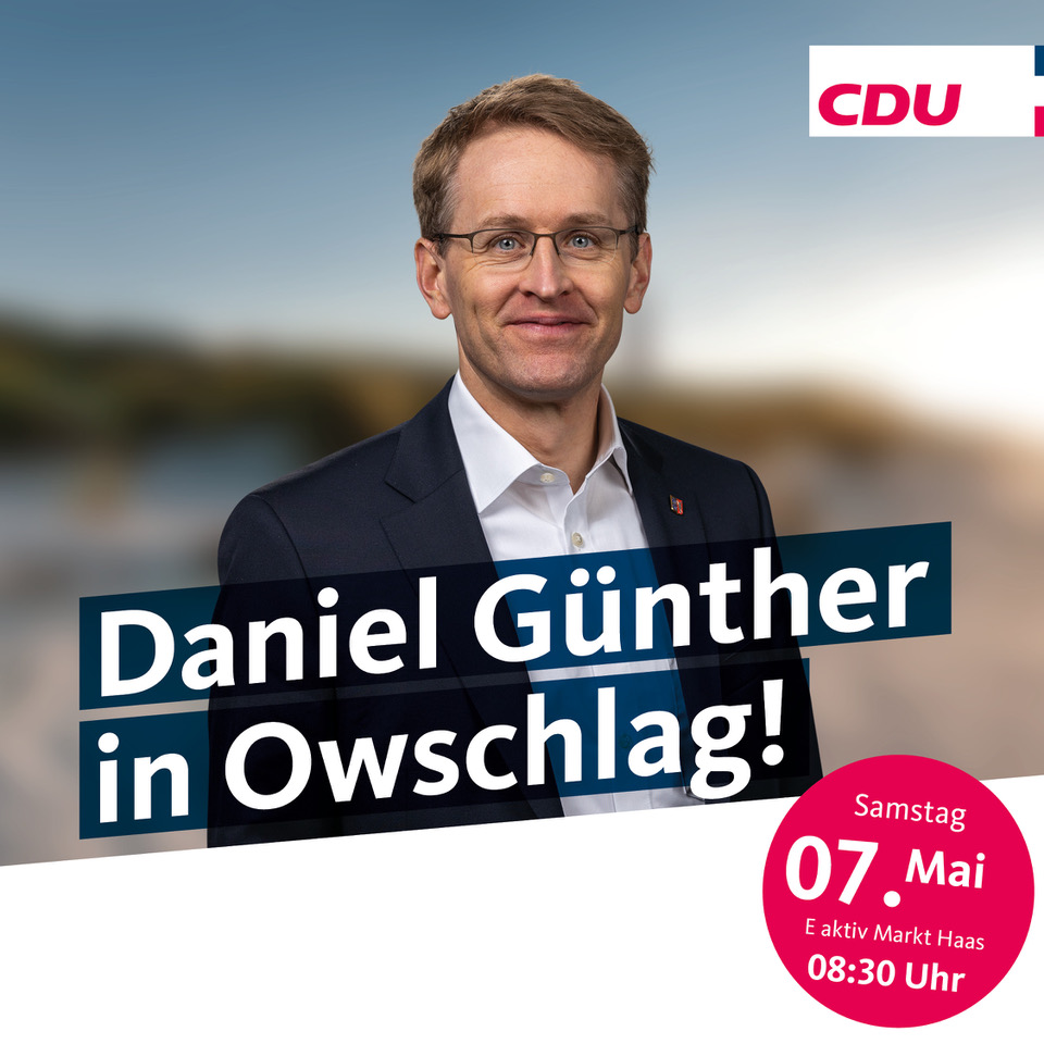Kommen Sie ab 8.30 Uhr am Edeka-Markt in Owschlag mit Daniel Günther ins Gespräch! Termin 07.05.2022 08:30 zum iCalendar hinzufügen zum Google-Kalender hinzufügen Empfehlen Sie uns!Bei Facebook teilen Bei Twitter (X) teilen Bei Whatsapp teilen Diese Seite drucken Diese Seite einem Freund schicken